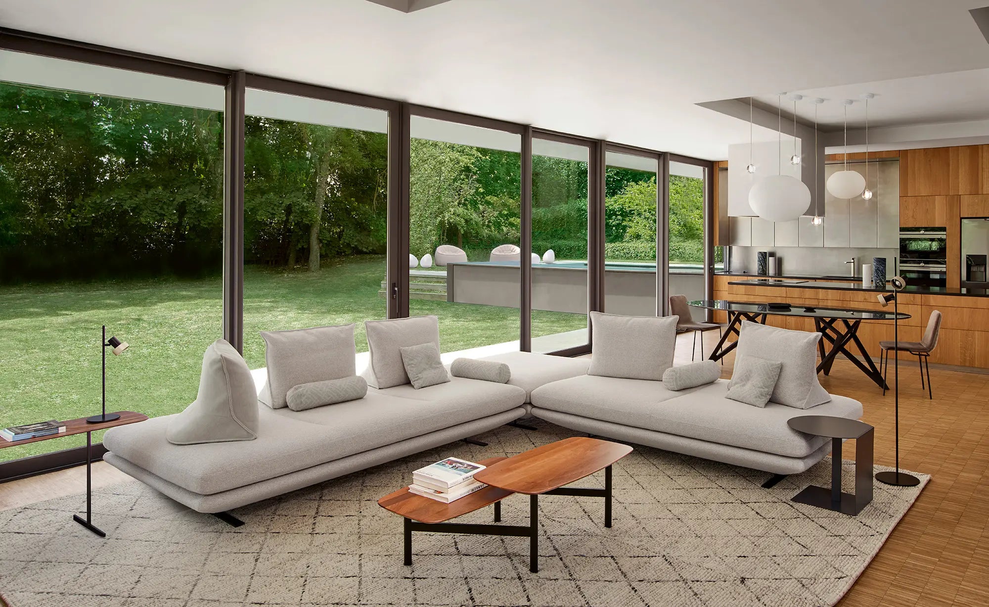 新しい暮らし方をかたちにした革新的ソファ「ロゼ プラド」。背クッションは自由に配置でき、ソファにもカウチにも変化。滑り止め付きで床置きでも使え、座面はベッドとしても活躍します。ライフスタイルに寄り添う、柔軟で心地よいデザインです。