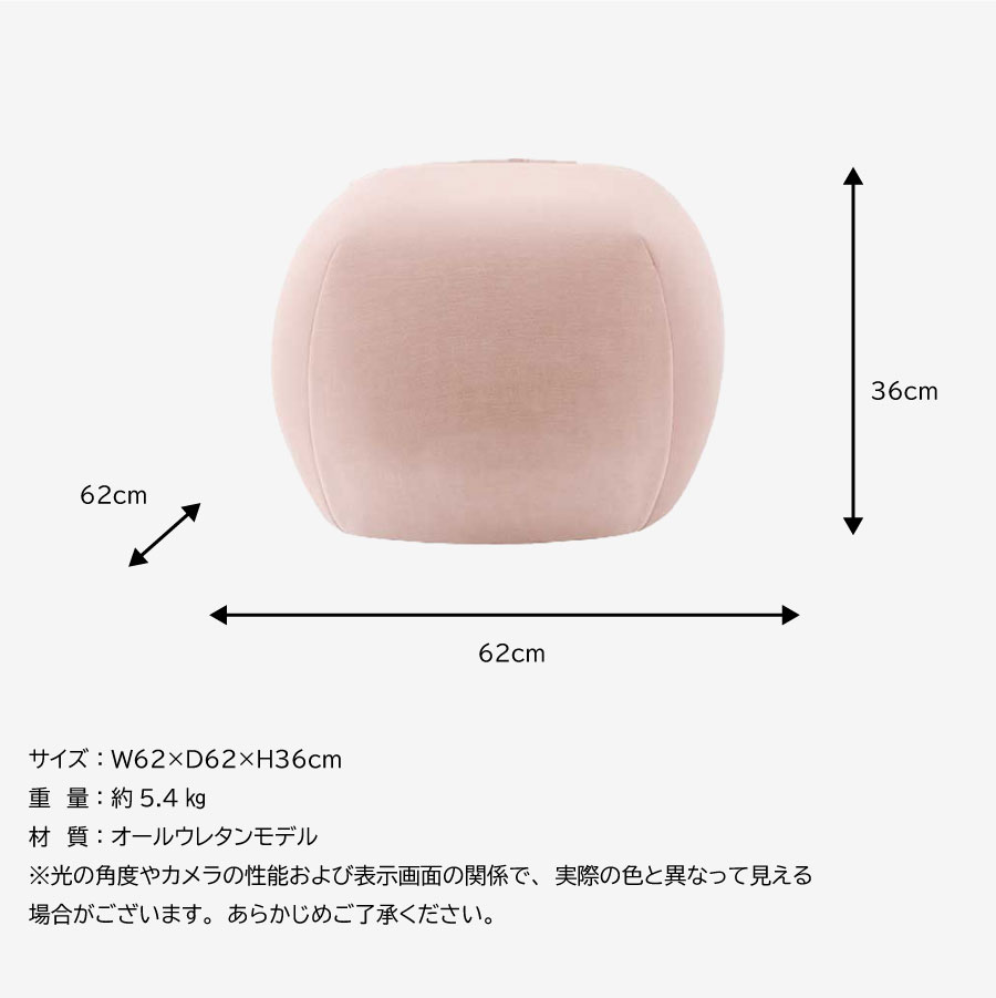 | 本体サイズ | 幅620 × 奥行620 (mm) ※曲線部や若干の個体差があるため、表記と多少の差異が生じる場合があります。あらかじめご了承下さい。 |